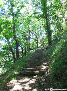 Dopo esserci goduti l’ameno panorama saliamo la gradinata in pietra e riprendiamo il cammino seguendo la puntuale segnaletica.