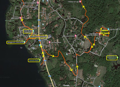 Scendiamo la scalinata e andiamo a dx sullo stretto sentierino per raggiungere una piccola spiaggetta sul Lago Maggiore.